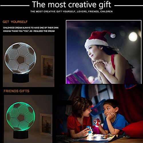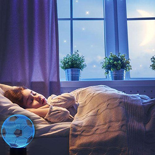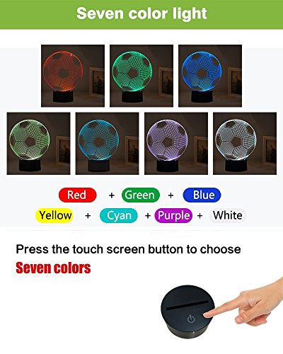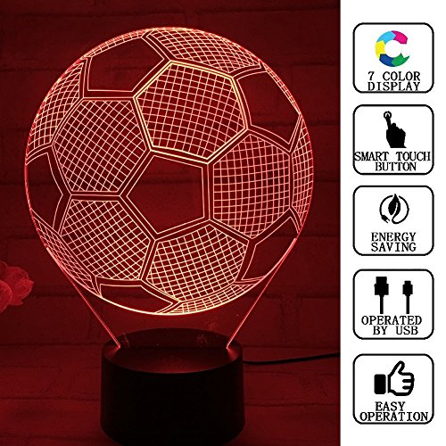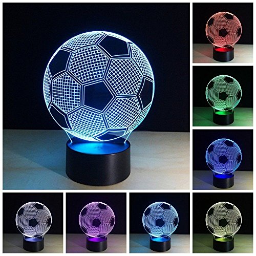 -. Binding : Kitchen -. Brand : DESHIR -. Color : Soccer -. EAN : 0717390340110 -. Feature : Easy operation 7 Color Change mode: Both Smart Remote control function and Smart Touch function / Operation modes for your option You can choose to stay in a single color mode as from red-green-blue-yellow-cyan-purple-white; Also you can enter into auto 7 colors change cycle mode / Two ways to be powered:USB Cable and 3 x AA battery(not included) / You can buy it as a Unique Birthday Gift for your Kids,A great Thanksgiving Gift,Christmas Gift,or buy it for Children's room Décor and so on.The Night light named 3D Night Lights,but It's not really a 3D / 7 colors change with 3D effect can make full room romantically and warm & sweet.Sleep with the nightlight on can help your Kids Fell safe at Night -. IsAutographed : 0 -. Label : DESHIR -. Manufacturer : DESHIR -. ProductGroup : Lighting -. ProductTypeName : HOME_LIGHTING_AND_LAMPS -. Publisher : DESHIR -. Studio : DESHIR -. Title : 3D LED Night Football Soccer Lighting Lamp Desk Table Lamp 7 Color Change Kids Baby Bedroom Decoration Children Gift -. UPC : 717390340110