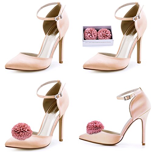 -. Feature : Size:US5-US10 / Ultra high approx 4.5" / Style:Stiletto Heel pointed toe ankle strap pumps / 2 Pcs free chiffon shoes clips, enjoy varied styles as your favor.