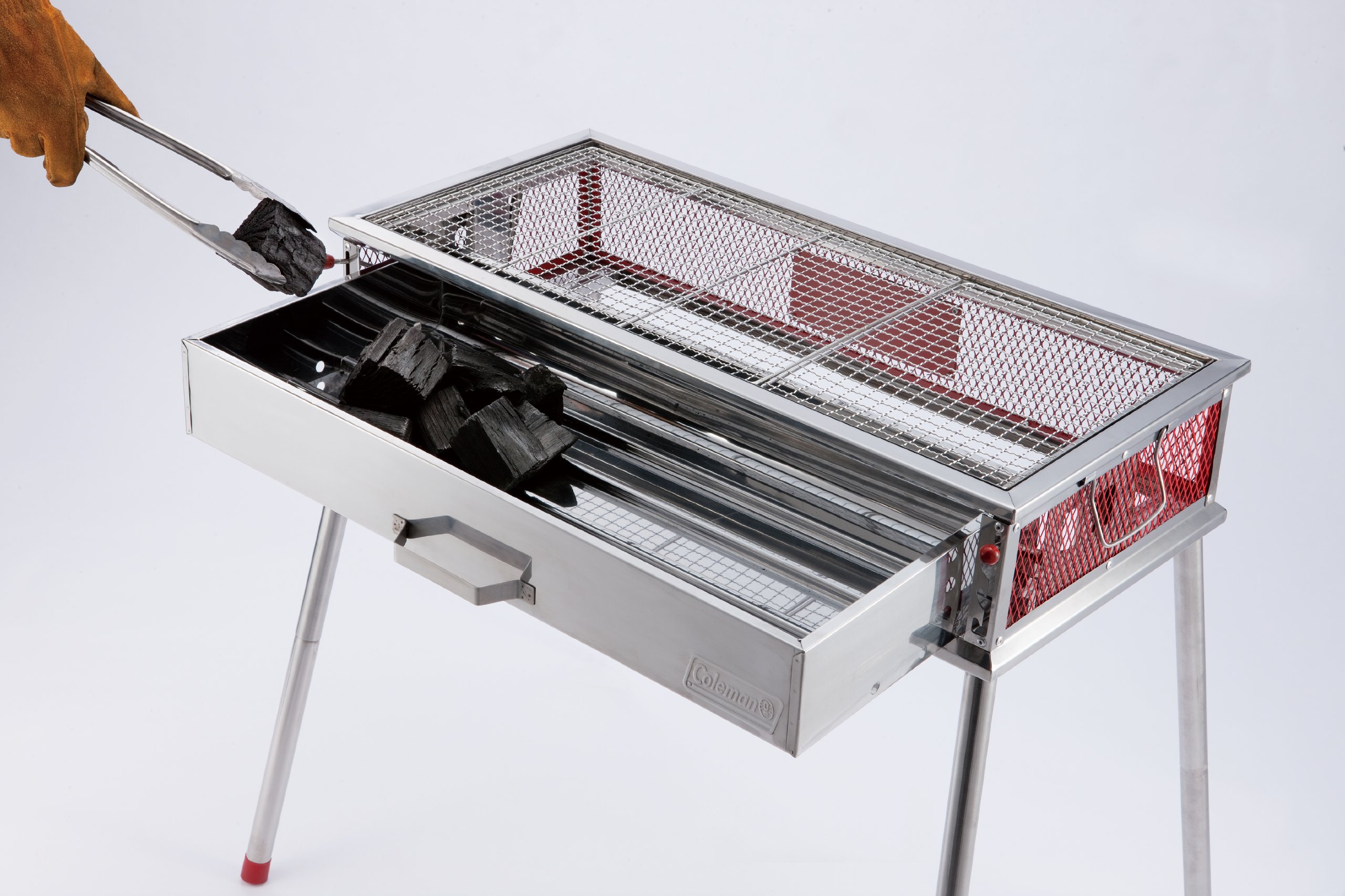 A pull-out type rostel which makes it easy to add charcoal.