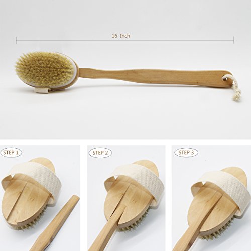 LONGHANDLE & DETACHABLE: 16 inch brushes will be more convenient if you are trying to dry brushing your back. The handle can be detachable which also means replaceable. You can reuse the handle. There is a loop strip on the end of the handle for hanging purpose