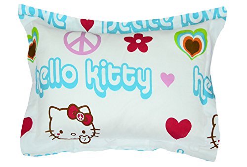 Pattern: Hello Kitty Peace Sign Sham and Love Hello Kitty Pillowcase Designs. Contents: Two standard size pillow shams, each with a finished size of 20 by 30 inches (51 by 76 centimeters) to fit a 20 by 26 inch pillow.