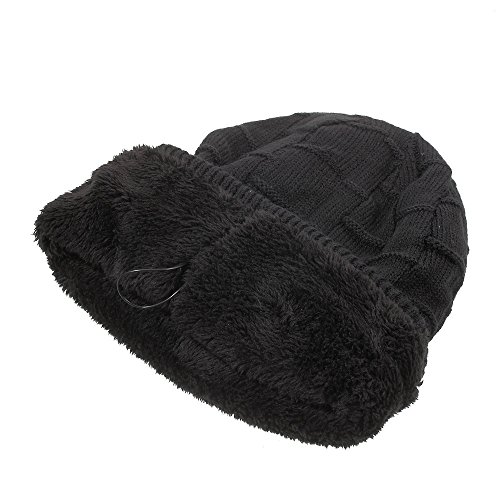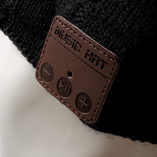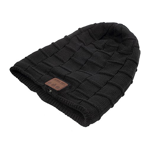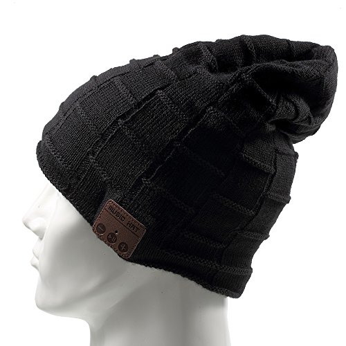 Bluetooth Music Hat, Knit Winter Warm Beanie w/ Built-in Removable Bluetooth Stereo Headphone & Microphone for Hands-Free (2016) - Black/Grid Pattern