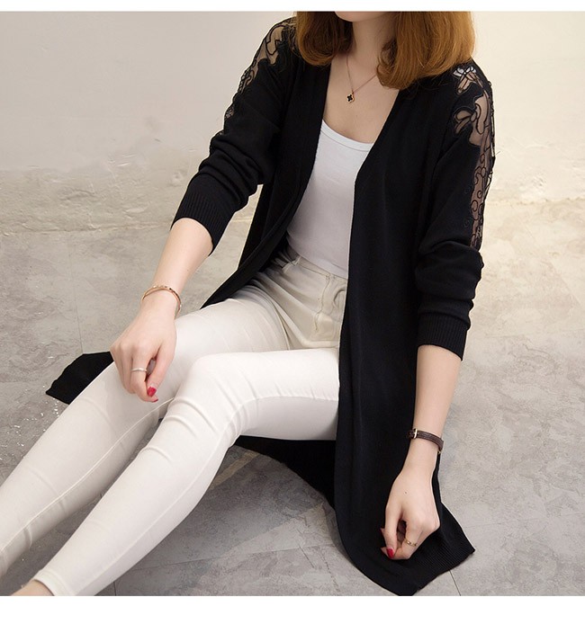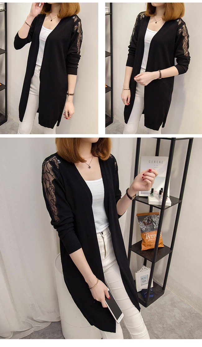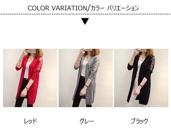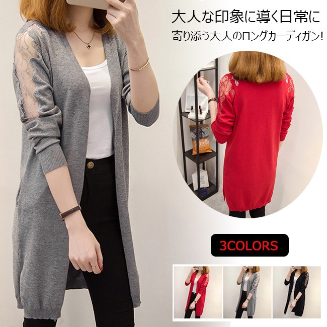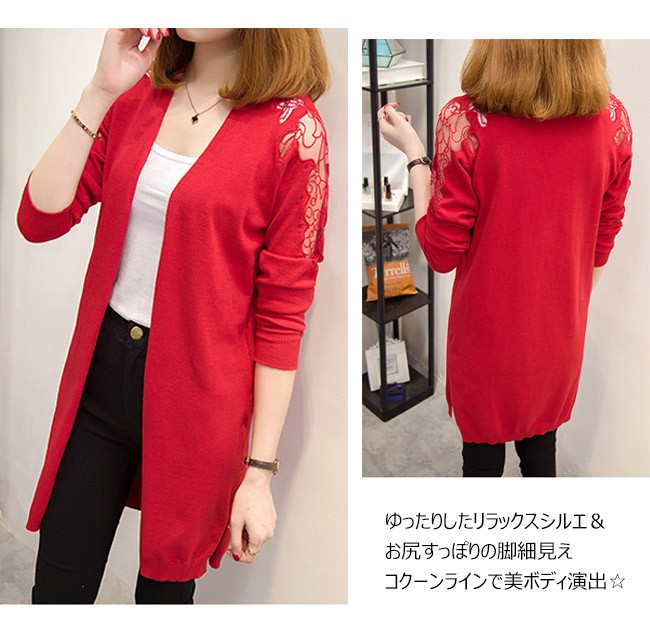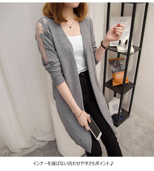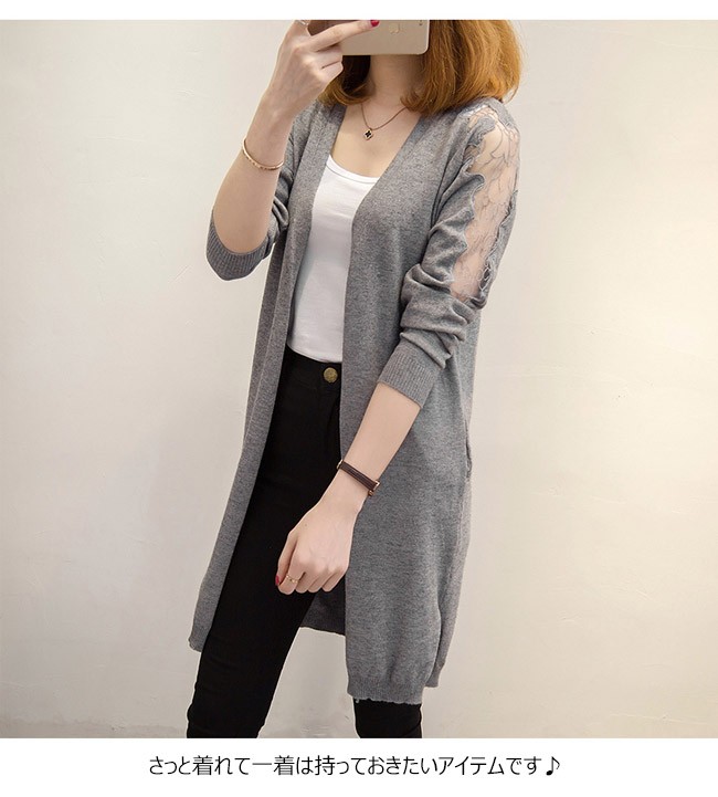 | 商品名 | 肩掛けカーディガン ニットカーディガン レース切り替えカーディガン 羽織り レディース レース 無地 ロング丈 シンプル ゆったり オーバー 薄手 2017秋新作 |