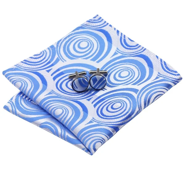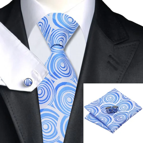 | [해외]SN-1127 블루 화이트 뜨거운 판매 페이즐리 넥타이 손수건 커프스 세트 남성 100% 실크 넥타이 정장 웨딩 파티 신랑 |