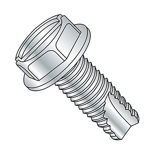 Steel Thread Cutting Screw, Zinc Plated Finish, Hex Washer Head, Slotted Drive, Type 23, 1/4"-20 Thread Size, 1-1/2" Length (Pack of 25)