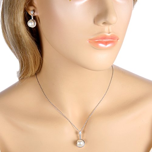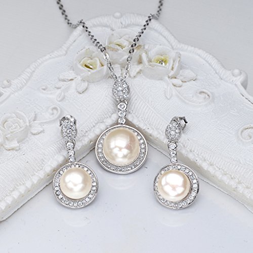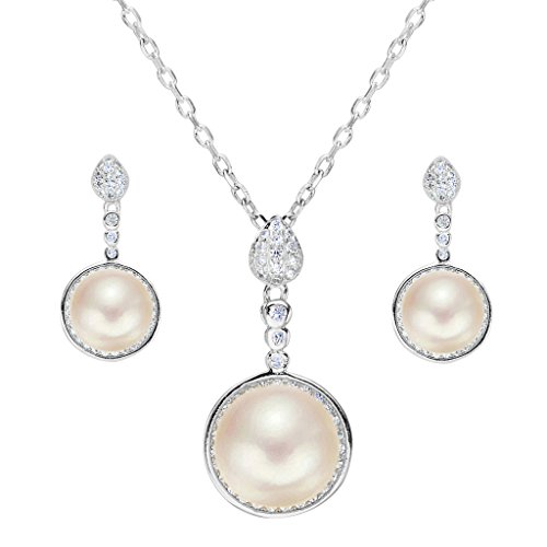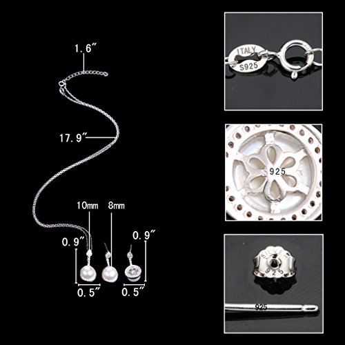 CZ Color:Clear, Freshwater Cultured Pearl Color: Ivory Color; Adjustable Necklace Length: 17.9-19.5in, Pendant Size: 0.5in by 0.9in, Earrings' size: 0.5in by 0.9in; Total Weight: 9g; Necklace's Freshwater Cultured Pearl size: 10mm, Earrings' Freshwater Cultured Pearl size: 8mm, For details, please refer to the fifth picture of this product.