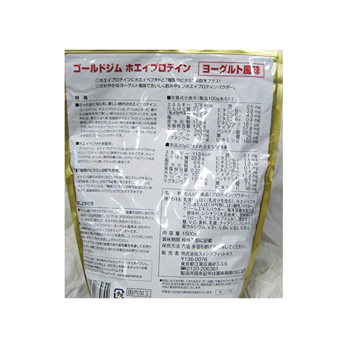 원본상품명: ゴ?ルドジム ホエイプロテイン ヨ?グルト風味 1,500g