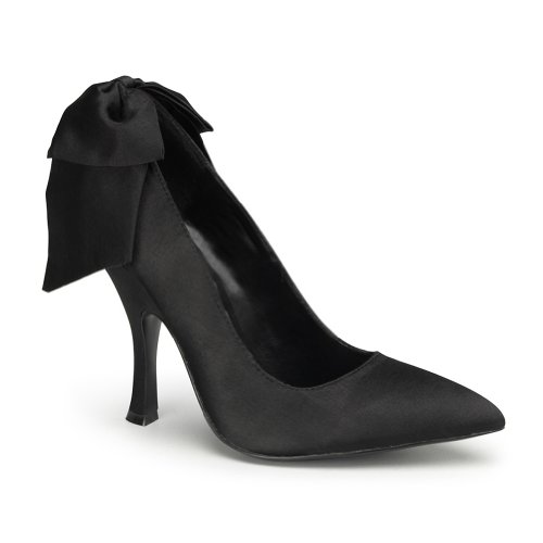 Womens Satin Pumps Pointed Toe Shoes 4 1/2 Inch Heel Large Bow Black or Red