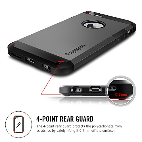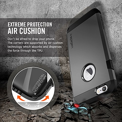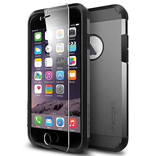 The Tough Armor case for the iPhone 6 provides impact absorption while staying less bulky than other protective cases. The dual layered build of flexible TPU and hard polycarbonate come with protective features such as Air Cushioned corners and an interior spider-web pattern.