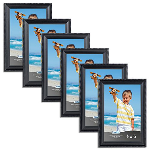Whether you create a striking photo gallery, or you spread them out throughout your house, the simple black frames will make your photos stand out. The elegant beaded edging around each frame will enhance any decor, whether in your home or office. Constructed of a high-quality acrylic resin, the frames have the look of real wood but are more durable than similar products made from painted pine. These frames have glare resistant glass to protect your valued photos and memorabilia .
