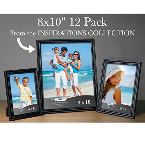 The Icona Bay Frame Bundle contains a dozen 8x10 inch frames to fit standard photo prints. Each frame has an easel back so you can place them vertically or horizontally on a tabletop, desk, or shelf.