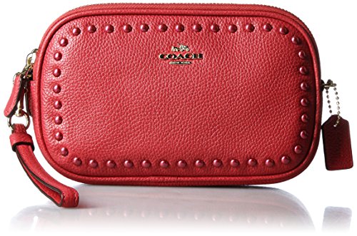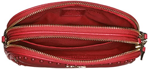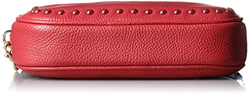 -. Title : Lacquer Rivets Crossbody Clutch In Pebble Leather Silver/Red Currant # 66154 SVDE3