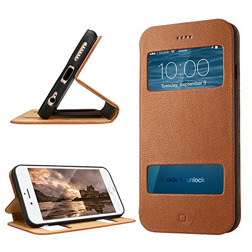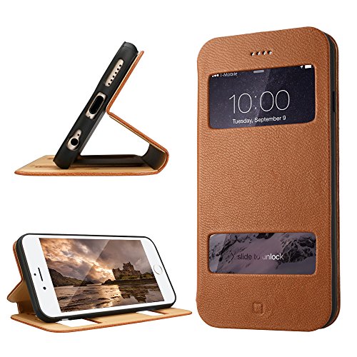 iPhone 6 Plus Case Cover, Labato® Leather Stand Case Cover Magnetic Design Genuine Leather Case Cover with Fold Stand and Window Open Case and 100% Handmade Folio Case Flip Cover Case for Apple iPhone 6 Plus 5.5'', Brown Color Lbt-I6L-07L21