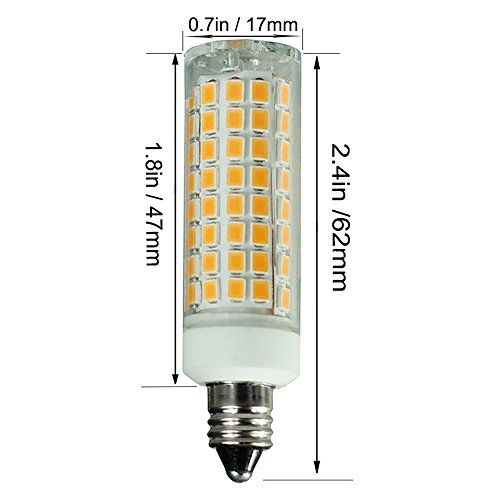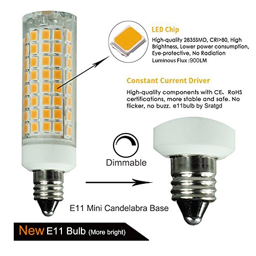 - Dimmable (Please use LED Dimmer); Input voltage: 110V/120V/130V; Light Color:Warm White 3000K; Base type: Mini Candelabra Base E11;ATTENTIONS:This is E11 base , not e12 base, please make sure you light fixture base before purchase.