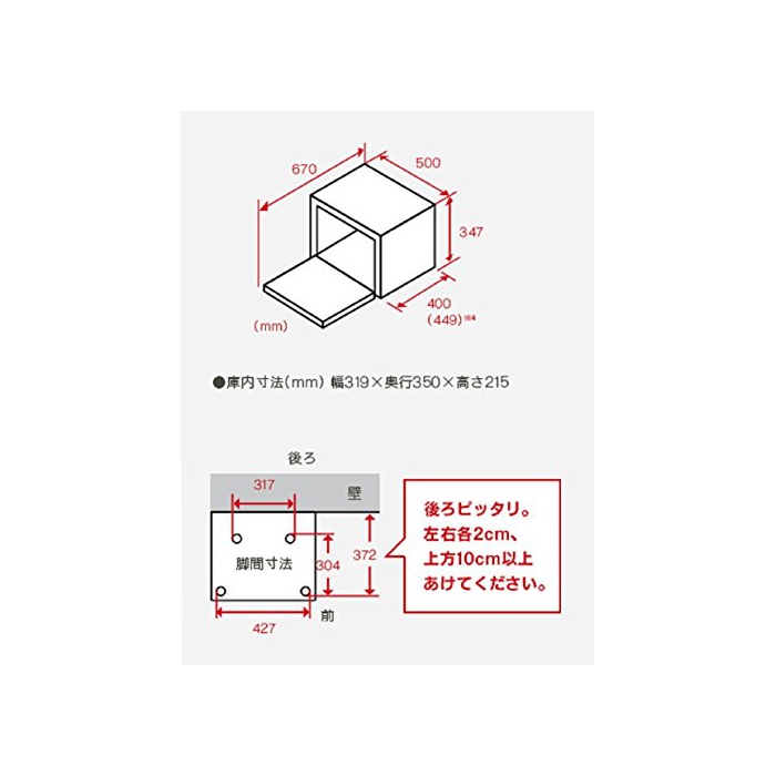 본체 사이즈:폭500×(길이)깊이400(※핸들 등을 만들어 넣음(담는 그릇·상자 등) 최대(길이)깊이치수:449mm,도어 개방시의(길이)깊이치수:670mm※)×높이347mm
