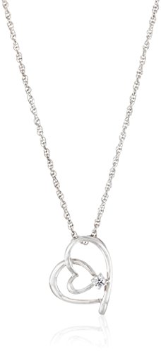 High-polished sterling silver modern floating loop heart pendant surrounds a cubic zirconia stud