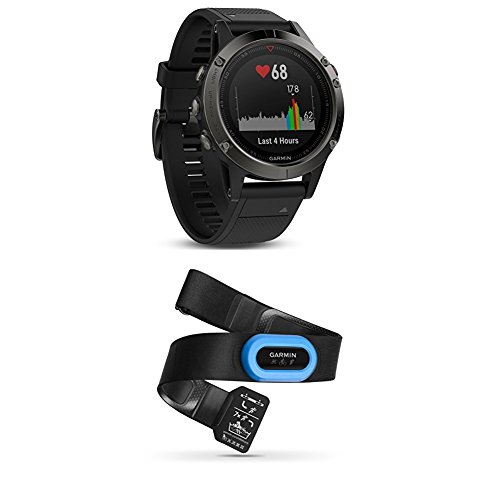 -. Binding : Product Bundle -. Color : Grey -. Feature : Premium multisport GPS watch with Elevate wrist heart rate technology / Fit for adventure with rugged design that features stainless steel bezel, buttons and rear case / Put key stats at your fingertips with the performance widget that shows the effects and progress of your workouts / COMPACT AND COMFORTABLE - HRM-Tri is the smallest and lightest heart rate monitor from Garmin. Designed with rounded edges and no exposed seams, the strap remains comfortable during extended hours of training. / SWIM HEART RATE1 - Stores up to 20 hours of heart rate data during swims, then forwards it to a compatible device at the end of the session. It also sends real-time heart rate to the watch when the monitor is out of the water / RUNNING DYNAMICS2 - Provides feedback on running form by measuring cadence, vertical oscillation and ground contact time when paired with a compatible device -. PackageQuantity : 1 -. ProductGroup : Wireless -. ProductTypeName : GPS_OR_NAVIGATION_SYSTEM -. Title : Garmin Fenix 5 - Slate Gray with Black Band and HRM-Tri Heart Rate Monitor