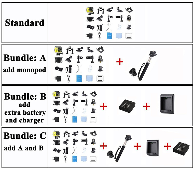 If you want to add the extra battery , travel charger and monopod. Please choose bundle C