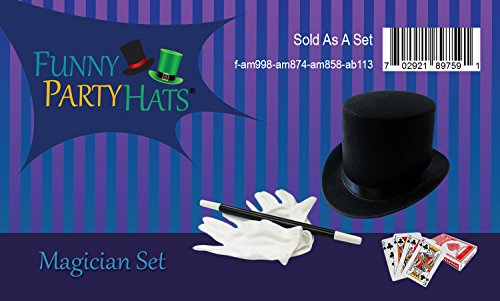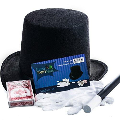 (Funny Party Hats)/Novelty Gag Toys/Magic Kits Accessories/DIRECT FROM USA/Magician Costume - 4 Pc Set, Magician Hat, Wand , Gloves Bonus Cards - Magician Kit for Kids ...
