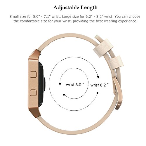 - Perfect genuine leather band with metal frame fit for Fitbit Blaze (Tracker is NOT included), small size fits for 5"-7.1" wrist, large size fits for 6.2"-8.2" wirst.