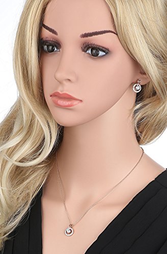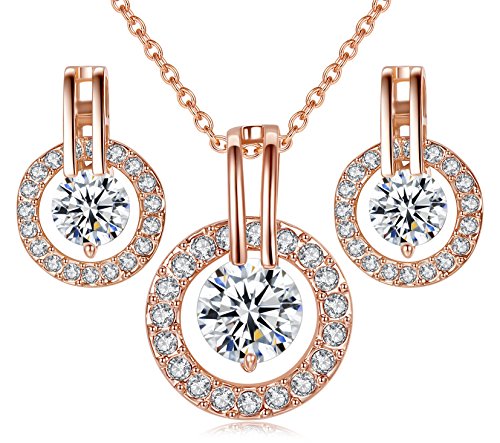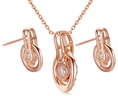 SPECIFICATIONS - 1) Pendant Size: 0.6" x 0.5" 2) Earring Size: 0.6" x 0.5" 3) Chain Length: 18" 4) Chain: Rose Gold Plated Chain 5) Clasp: Lobster Claw 6) Stone: Austrian Rhinestone, Round Flatback,Clear White