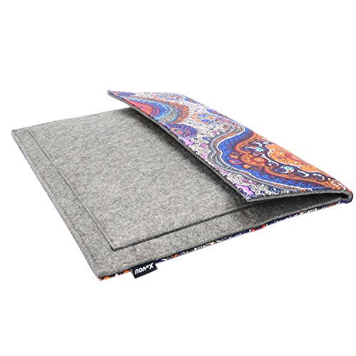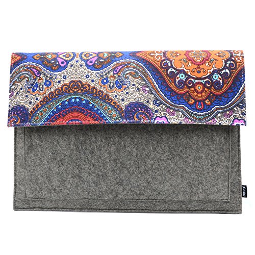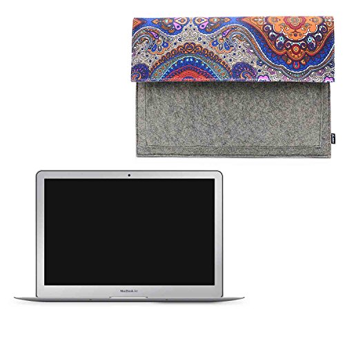 Latest designed product, made of soft and environmentally friendly canvas felt to protect your computer from dirt, accidental scratches and light drops.Features a canvas felt cover with blue and orange Decorative pattern enables you to carry your laptop in a uniquely sleek style.