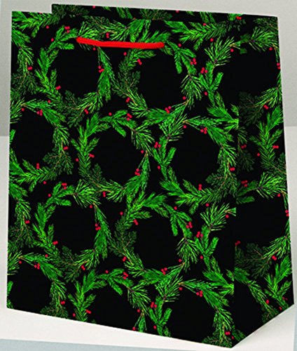 Paper Source Evergreen Wreaths 8" x 9.5" x 4" Medium Bag
