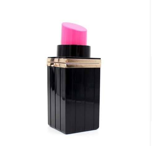 Women Acrylic Black Lipstick Shape Evening Bags Purses Clutch Vintage Banquet Handbag Pink