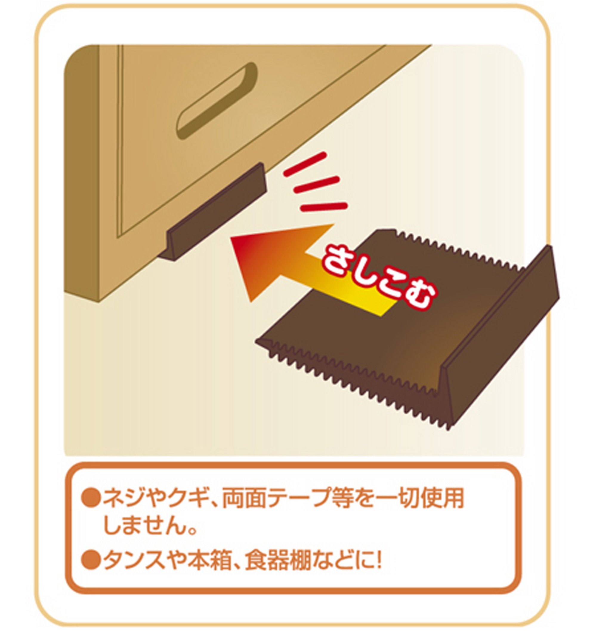 By installing it on furniture such as a chest of drawers and a cupboard, it prevents the slide and prevents it from falling. Earthquake-proof stopper