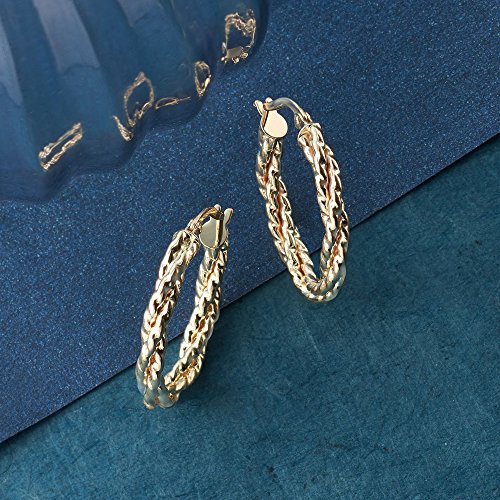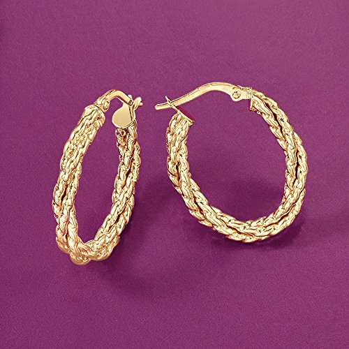 Specializing in Italian craftsmanship, Ross-Simons reinvents traditional jewelry for women of today. These oval hoop earrings twist with a glinting texture. Artfully sculpted in Italy by our skilled goldsmiths. Hanging length is 7/8". Snap-bar, 14kt yellow gold hoop earrings. Each Ross-Simons item arrives in a fine jewelry presentation box. Shop Ross-Simons jewelry risk-free as all items include a 30-day, 100% money-back guarantee.Feature