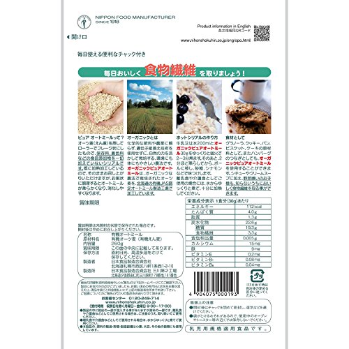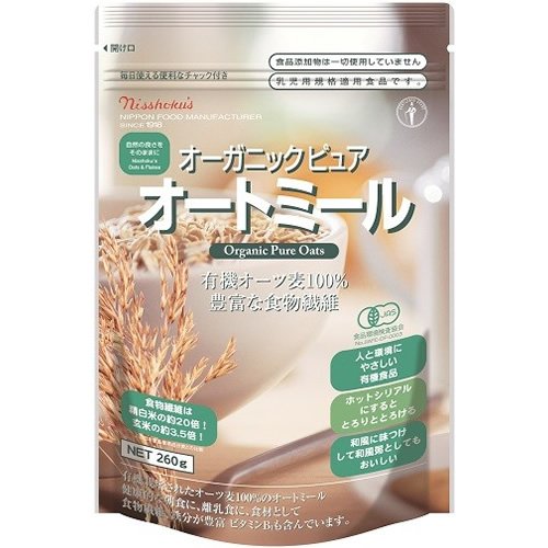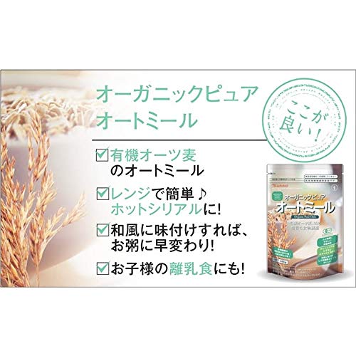 有機栽培されたオーツ麦のみ使用したオートミール。健康的な朝食に、食材としてもご利用頂けます。食物繊維・鉄分が豊富であり、ビタミンB1も含んでおり、栄養バランスに優れています。また、添加物や保存料は一切使用しておらず、離乳食にも安心してご利用頂ける「乳児用規格適用食品」です。
