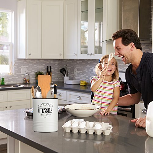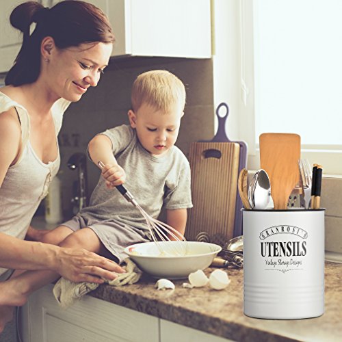 Vintage eye-catcher: The GranRosi kitchen utensil holder brings trendy retro vibes to your kitchen. Its timeless creamy white color and the minimalistic design, makes the jar a must-have for your farmhouse style kitchen (Utensils NOT included)
