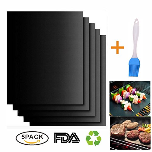 5Pack BBQ Mat, Non Stick Barbecue Mat & Baking Mat, 100% PFOA Free, Reusable, Easy to Clean with a Free Cooking Brush.