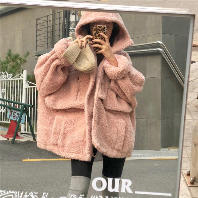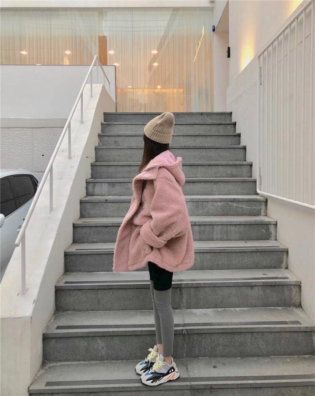フード付きの可愛いモコモコ感とピンクカラーが女子力up♪