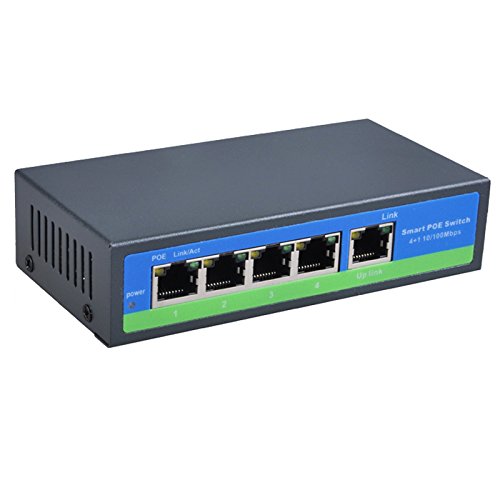 ANVISION 5-Port Ethernet Switch with 4 PoE Ports + 1 Uplink, 10/100Mbps IEEE802.3af/at, 78W