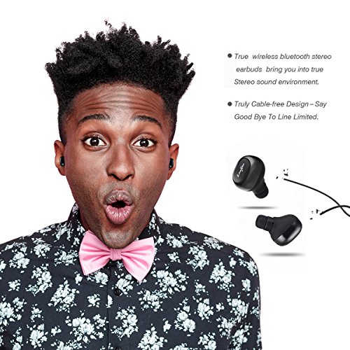 【True Wireless Earbuds】Most popular dual wireless earbuds, fashionable and black sentience technology design. No line limited, sharing the music or movie voice with your wife, children, parents or your friends. No more worries about the cord bouncing, tapping, or rubbing on something. No more noise when you move and no more cords stuck to your neck when you sweat.Wireless connect range up to 10 meters (33ft).