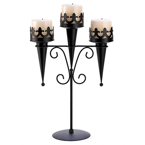 -. Title : NEW 11¾"x4¾"x15¾" High Black Iron Medieval Style Triple Lantern Candle Stand