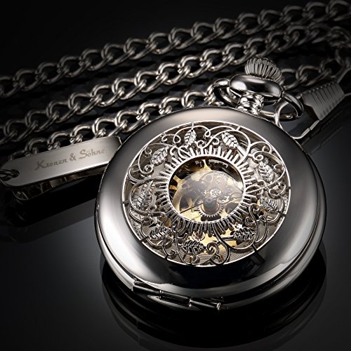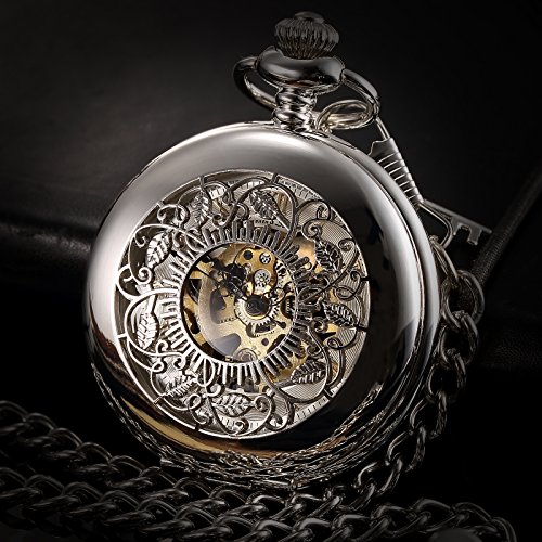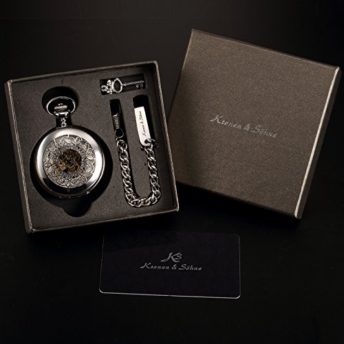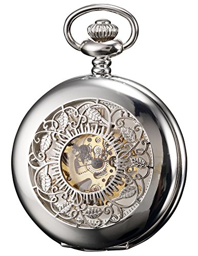 -. Title : KS メンズ シルバー スケルトン 手巻き 機械式 アナログ 懐中時計+チェーン KSP048