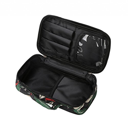 LOUISE MAELYS Multifunction Travel Cosmetic Bag Makeup Toiletries Organizer Pouch Floral Pattern Storage Bag Black