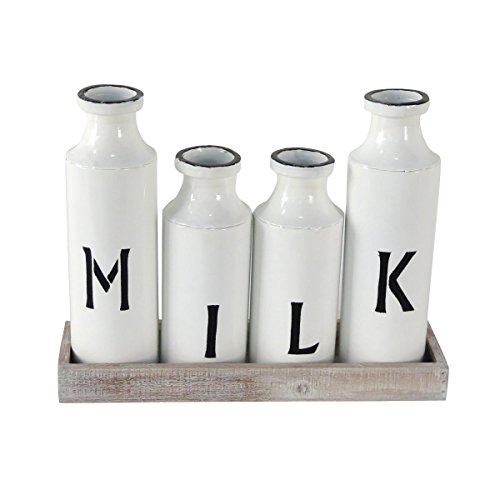 Foreside Home & Garden Foreside Enamel Milk Bottles on Wood Tray