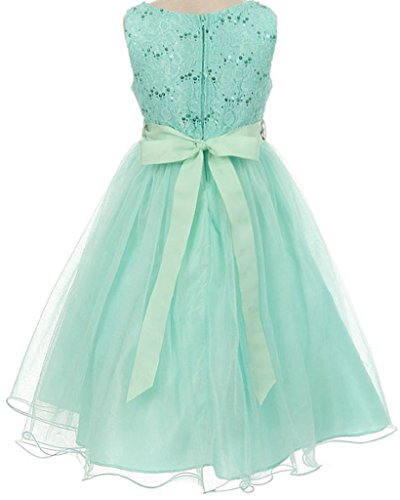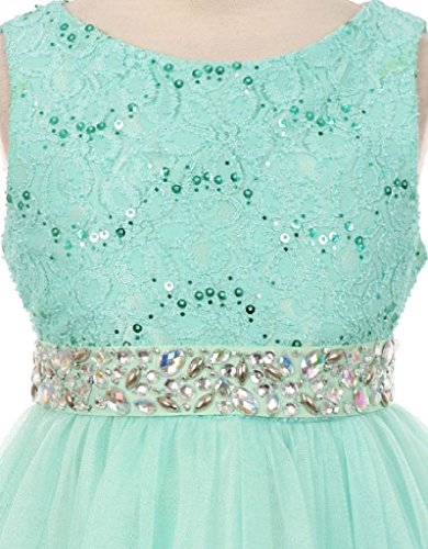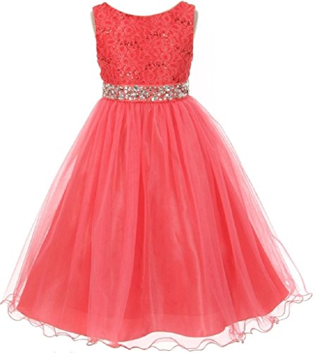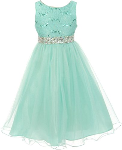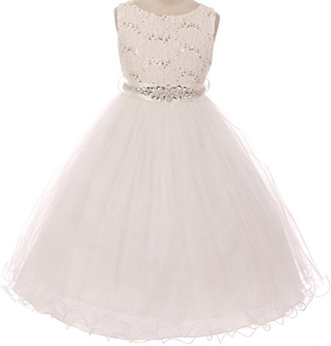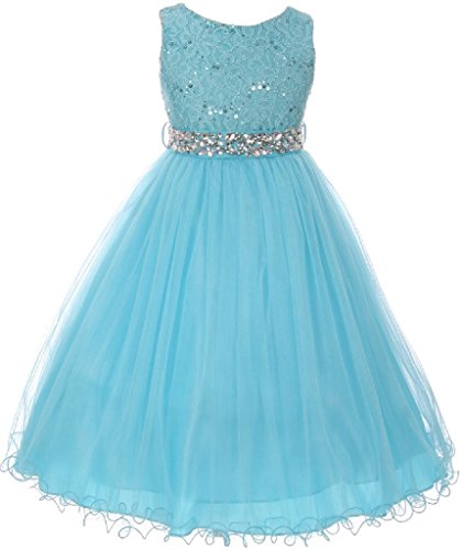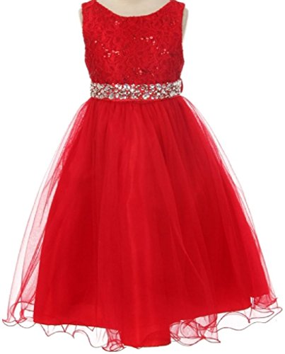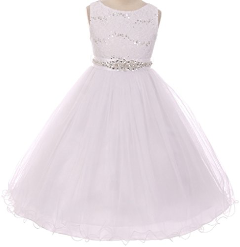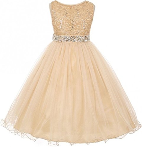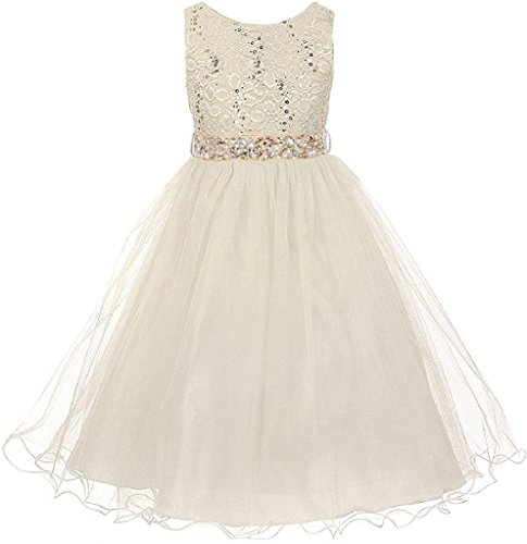 Beautiful sleeveless tulle dress that features a gorgeous bead embellished waist that gives the dress pizzazz. The bodice is embroidered with lovely eye catching sequins. Sash can be tied in the back to your desired fit. The tulle skirt features a curled hemline.Feature