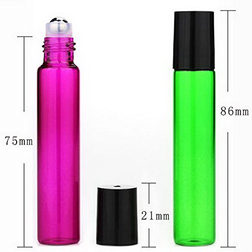 MaxMau Pack of 12 - 10ml Glass Roll On Bottles with Steel Roller Ball for Essential Scented Oil Aromatherapy