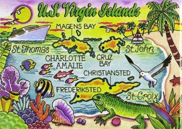 US Virgin Islands Map Caribbean Fridge Collector's Souvenir Magnet 2.5" X 3.5"