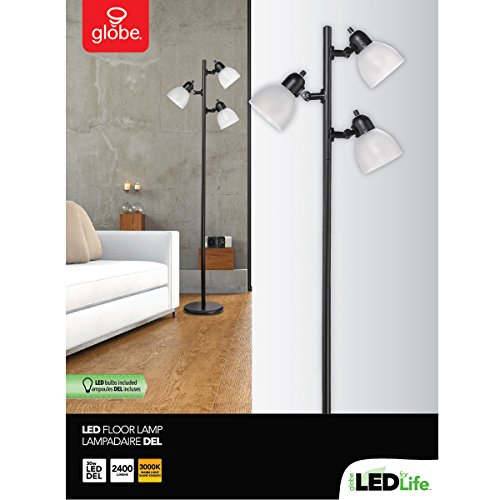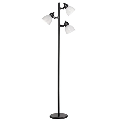 Novogratz 63" 3-Light LED Floor Lamp, Matte Black Finish, Frosted Plastic Shades, Black Cord with Polarized Plug, LED Bulbs Included, 12719