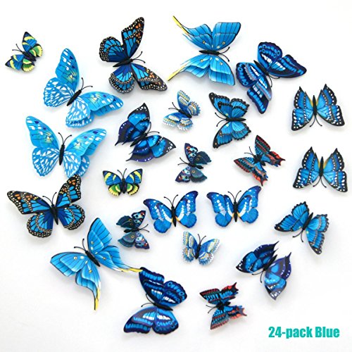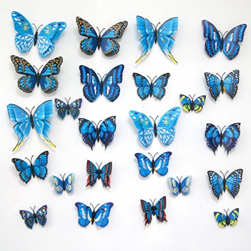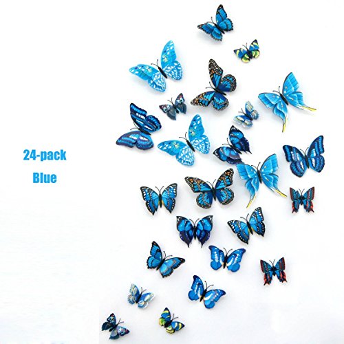 24-Pack Beautiful 3d Butterfly Wall Decals Removable Diy Home Decorations Art Decor Wall Stickers & Murals for Babys Bedroom Tv Background Living Room (blue,Uelfbaby)
