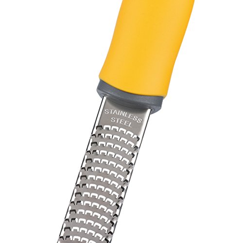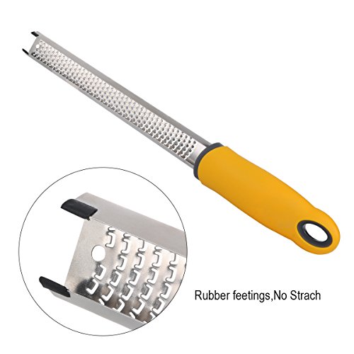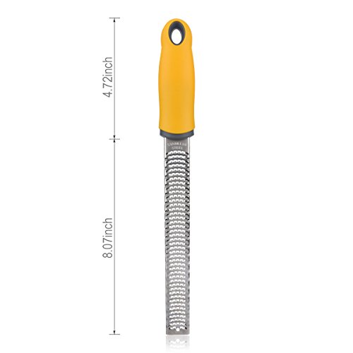 HIGH QUALITY: Flytt zester/grater made of food grade 18/8 stainless steel,grating edges stay razor sharp and won't rust.Non-slip Handle made of TPR, soft and comfortable ,makes it perfect to zest and grate easily!
