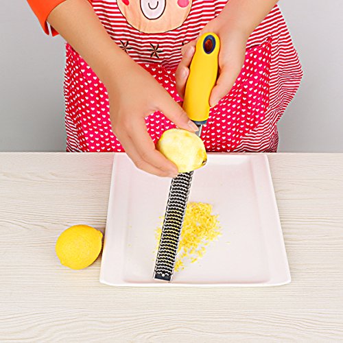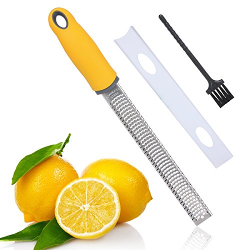 Flytt Stainless Steel Citrus Lemon Zester and Cheese Grater,Sharp Blade and Ergonomic Handle with Protective Cover,Free Cleaning Brush,Dishwasher Safe(Yellow)