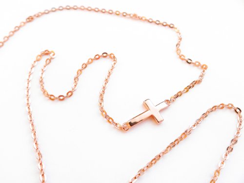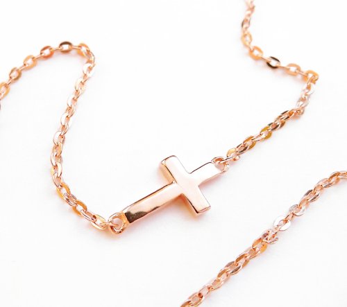 Chic and Perfectly Feminine Petite Rose Gold Tone Sideways Cross for Women or Girls