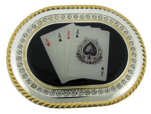 Product DescriptionCasino Four Aces Poker Card Belt Buckle Gold Rhinestones.0