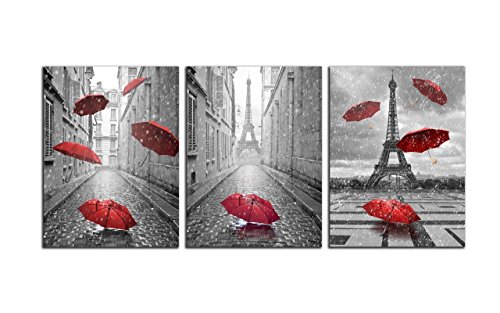 -. Title : NAN Wind 3 Pcs Modern Giclee Canvas P.R.Ints Paris Black and White with Eiffel Tower Red Car Umbrellas Wall Art Landscape Wall Decor Paintings on Canvas Stretched and Framed Ready to Hang for Home Decor